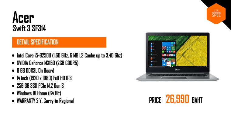 หมายเหตุ ข้อมูลที่แสดงในหน้านี้อาจไม่ครอบคลุมทุกส่วนที่มีภายในตัวเครื่อง ซึ่งทางเว็บไซต์สามารถทำการเปลี่ยนแปลงแก้ไขข้อมูลได้ โดยไม่ต้องแจ้งให้ทราบล่วงหน้า ผู้อ่านควรศึกษาข้อมูลเพิ่มเติมจากเว็บไซต์ผู้ผลิตสินค้า และควรสอบถามข้อมูลเพิ่มเติม จากผู้ขายสินค้า ณ จุดวางจำหน่ายทุกครั้ง เพื่อความถูกต้อง หากพบว่าข้อมูลรายละเอียดที่เราแสดงในหน้านี้มีความผิดพลาดหรือพบปัญหาในการแสดงผลของเว็บไซต์ โปรดแจ้งให้เราทราบได้ที่ feedback@notebookspec.com