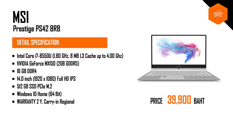 MSI - Prestige PS42 โน๊ตบุ๊คบางเฉียบ 15.9 ม.ม. เบา 1.19 โล สเปก i5 + MX150 จอสวยเทพ เอาใจสายทำงานJul 26, 2018