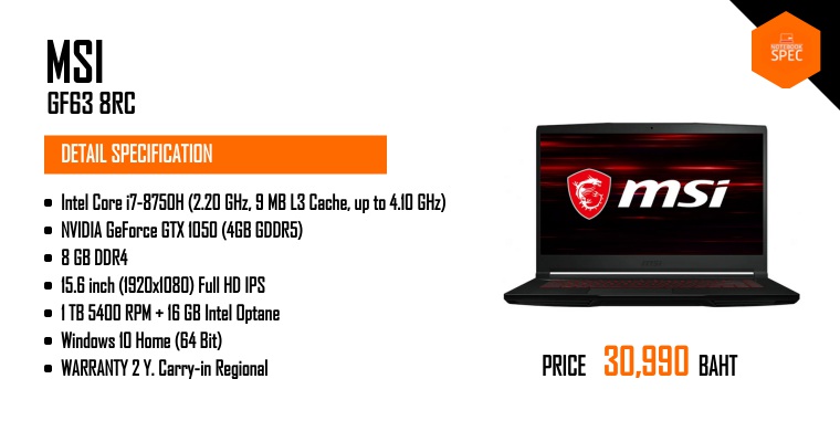 Review - MSI GF63 8RD เกมมิ่งโน้ตบุ๊คขอบจอบาง สเปคแรง ราคาคุ้ม i7-8750H + GTX 1050TiJul 24, 2018 -