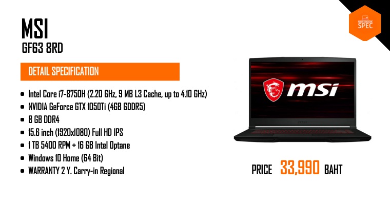 Review - MSI GF63 8RD เกมมิ่งโน้ตบุ๊คขอบจอบาง สเปคแรง ราคาคุ้ม i7-8750H + GTX 1050TiJul 24, 2018 -