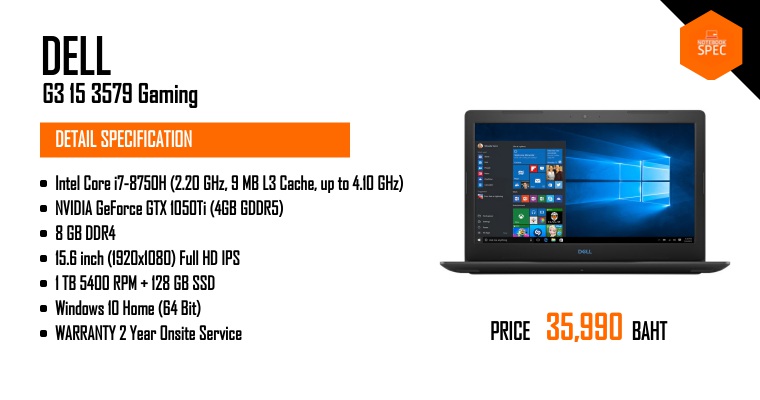 Review - Dell G3 15 3579 Gaming Notebook ราคาถูกที่สุดจาก Dell สเปก i7 + GTX 1050Ti ราคา 32,900 บาทJul 23, 2018 -