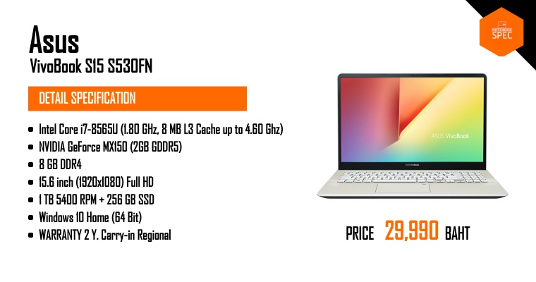 Review – ASUS VivoBook S15 S531 โน้ตบุ๊คบางเบา 15.6″ : i7 + MX250 ได้ SSD 512GB + HDD 1TB ราคาคุ้มJul 13, 2019 -
