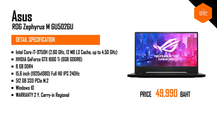 Review - ASUS ROG ZEPHYRUS M GU502 บางเฉียบเบา 1.9 โล สเปก i7 + GTX1660Ti + จอ 240HzAug 11, 2019