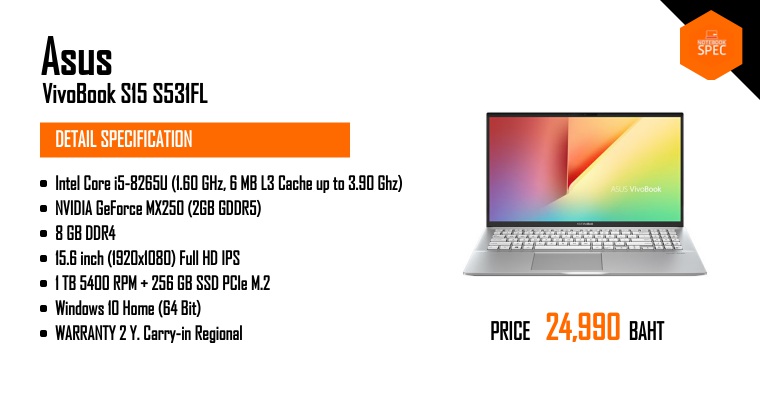 Review – ASUS VivoBook S15 S531 โน้ตบุ๊คบางเบา 15.6″ : i7 + MX250 ได้ SSD 512GB + HDD 1TB ราคาคุ้มJul 13, 2019 -