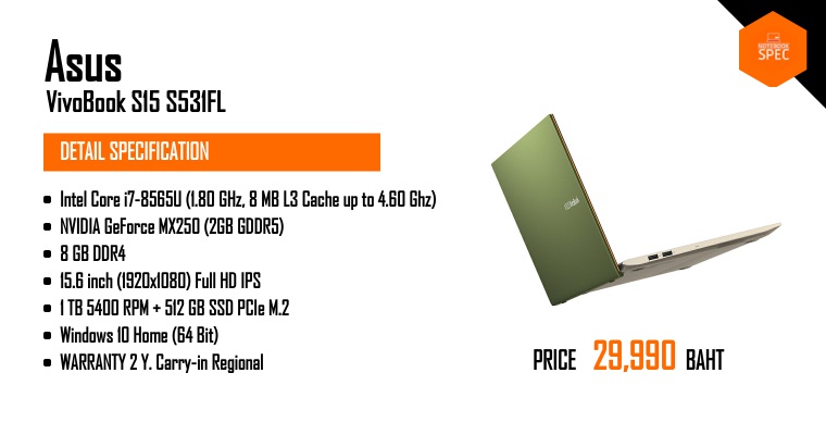 Review – ASUS VivoBook S15 S531 โน้ตบุ๊คบางเบา 15.6″ : i7 + MX250 ได้ SSD 512GB + HDD 1TB ราคาคุ้มJul 13, 2019 -