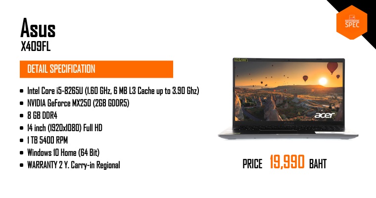 หมายเหตุ ข้อมูลที่แสดงในหน้านี้อาจไม่ครอบคลุมทุกส่วนที่มีภายในตัวเครื่อง ซึ่งทางเว็บไซต์สามารถทำการเปลี่ยนแปลงแก้ไขข้อมูลได้ โดยไม่ต้องแจ้งให้ทราบล่วงหน้า ผู้อ่านควรศึกษาข้อมูลเพิ่มเติมจากเว็บไซต์ผู้ผลิตสินค้า และควรสอบถามข้อมูลเพิ่มเติม จากผู้ขายสินค้า ณ จุดวางจำหน่ายทุกครั้ง เพื่อความถูกต้อง หากพบว่าข้อมูลรายละเอียดที่เราแสดงในหน้านี้มีความผิดพลาดหรือพบปัญหาในการแสดงผลของเว็บไซต์ โปรดแจ้งให้เราทราบได้ที่ feedback@notebookspec.com