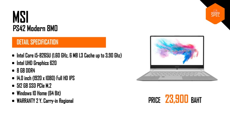 ลดจัดหนัก โน๊ตบุ๊คสายบางเบา MSI PS42 8RB สเปค i5-8250U + MX150 + SSD m.2 256 GB PCIE แค่ 23,900 บาทMar 23, 2019
