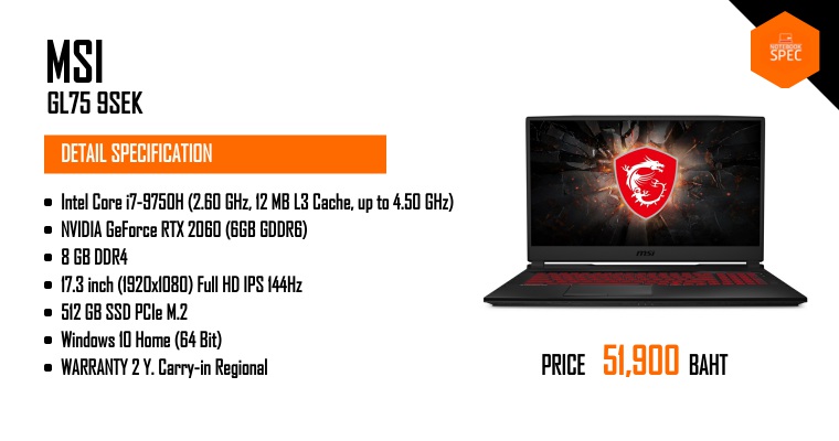 MSI GL75 โน๊ตบุ๊คเล่นเกมจอใหญ่ 17.3" 144Hz ที่น่าซื้อที่สุด การ์ดจอ GTX 1650/1660Ti / RTX 2060Aug 13, 2019