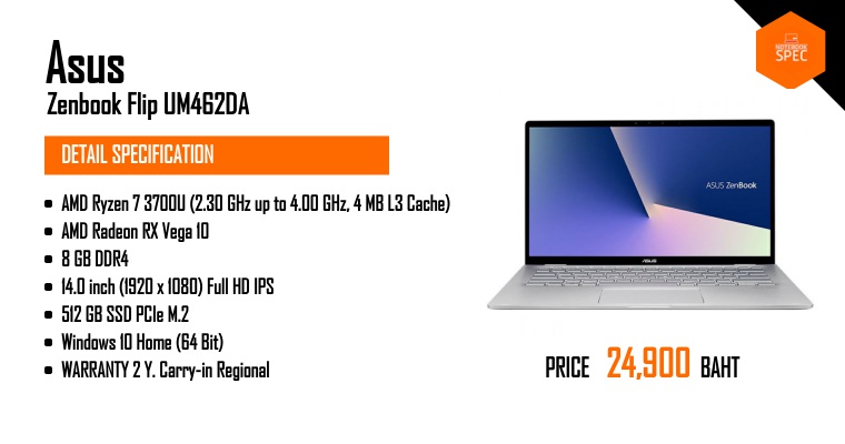 Review - ASUS ZenBook Flip 14 UM462DA ที่สุด 2-in-1 Notebook ราคา 22,990 สเปก Ryzen 7 จอ sRGB 95%Aug 29, 2019 -