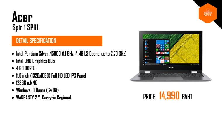 Review – Acer Spin 3 โน้ตบุ๊ค 2-in-1 จอสัมผัส 14 นิ้ว พร้อม SSD 256 GB + Win 10 แท้ ราคา 19,990 บาทMay 13, 2018 -