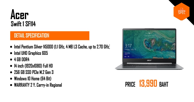 Acer - เปิดตัว Swift 1 รุ่นใหม่ มาพร้อมกับชิปประมวลผล Pentium N3710 สถาปัตยกรรม 'Gemini Lake'Apr 10, 2018