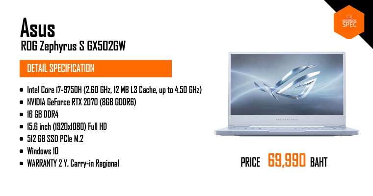 Gaming Notebook - ASUS ROG ZEPHYRUS S GX502 ดีไซน์ใหม่ สเปก i7-9750H + RTX2070 + จอ 240HzApr 28, 2019 -