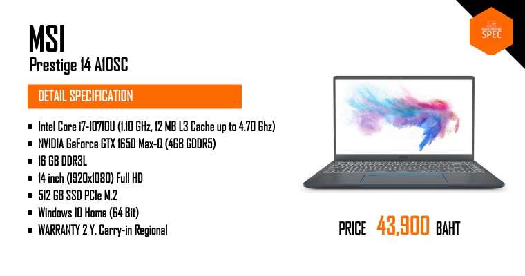 Unbox/Preview - MSI Prestige 14 สเปก i7-10510U + MX250 สีขาวใหม่สด เบา 1.29 โล ราคา 36,900 บาทJan 30, 2020 -
