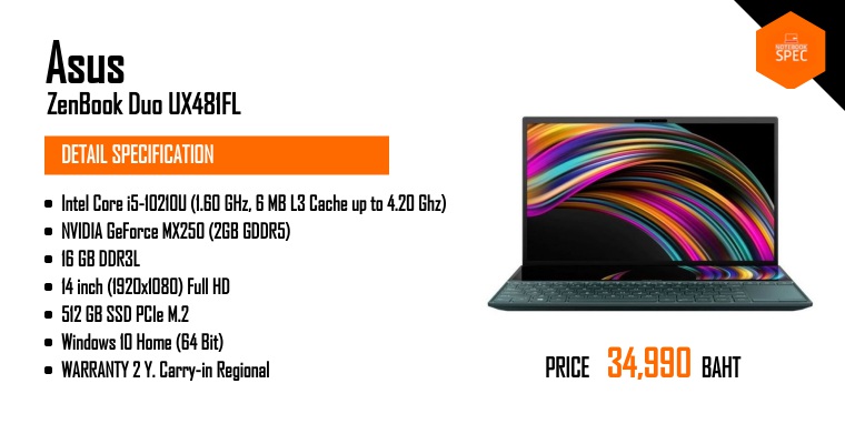 Review - ASUS ZenBook Duo UX481 โน๊ตบุ๊ค 2 จอ สเปก Core i Gen 10 + MX250 แรงลื่น ราคา 34,990 บาทOct 20, 2019 -