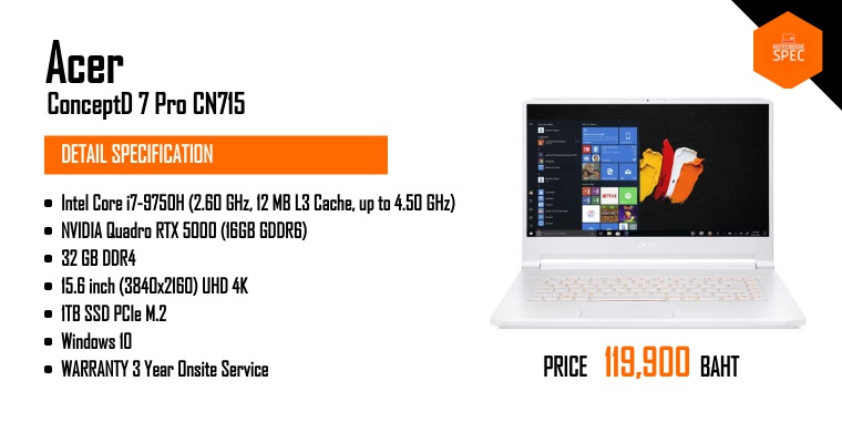 คอมนี้ดี EP36 - Review Acer ConceptD 5 Pro โน้ตบุ๊คจอเทพ 4K Ultra HD สเปก i7-9750H + Quadro RTX 3000Sep 5, 2019 -