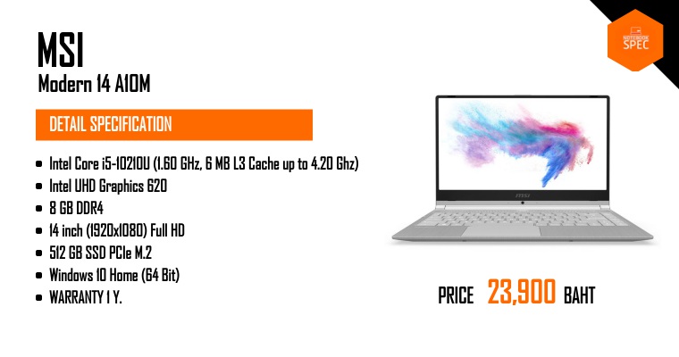 MSI Modern 14 พลัง Intel Core i5 จอกาง 180 คีย์บอร์ดมีไฟ ได้ MS Office แค่ 16,490May 10, 2025 -