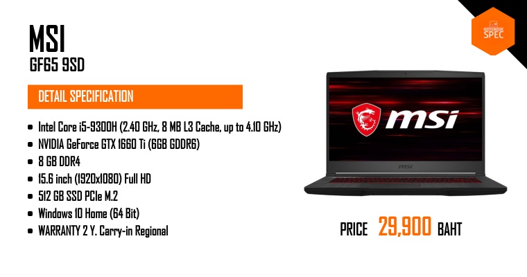Preview - MSI GF65 Thin สเปก i7-9750H + GTX 1660 Ti แรงสุด เบาสุด 1.86 โล คุ้มสุดๆ 36,900 บาทDec 24, 2019