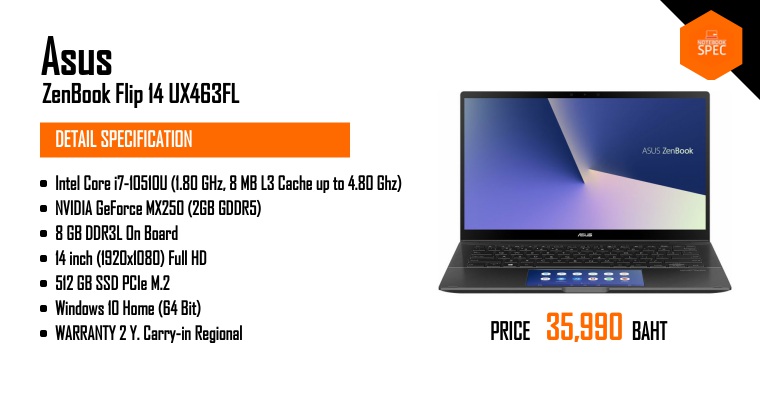 Review - ASUS ZenBook Flip 14 UM462DA ที่สุด 2-in-1 Notebook ราคา 22,990 สเปก Ryzen 7 จอ sRGB 95%Aug 29, 2019 -