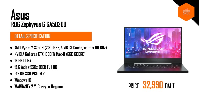 Review – ASUS ROG Zephyrus G GA502 สเปก Ryzen 7 3750H + GTX 1660Ti Max-Q + จอ IPS 240HzMar 8, 2020 -