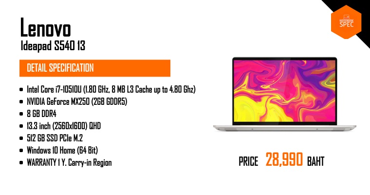 Review – Lenovo IdeaPad S540 13 จอ QHD สวยเนียน สเปก Core i Gen 10 + MX250 แรงลื่น เบา 1.28 โลFeb 7, 2020 -