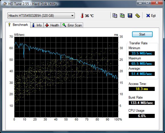 วิธีทดสอบ : ทดสอบความเร็วในการอ่านข้อมูล สเปกของ HDD เป็นฮาร์ดดิสค์ขนาด 320 GB
