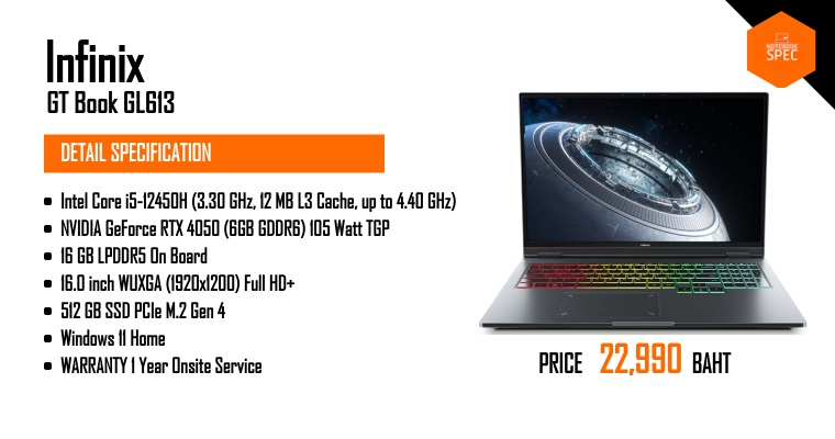 เปิดตัว Infinix GT Book โน๊ตบุคดีไซน์เท่ ไฟท้าย RGB ในราคา 39,XXXJun 26, 2024 -